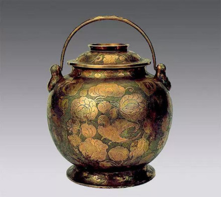 鎏金鸚鵡紋提梁銀罐