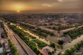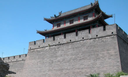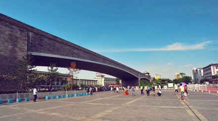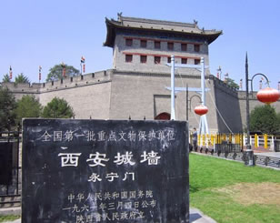 雄偉壯觀的西安城墻已成為市區(qū)最吸引人的觀光勝地之一。沿城墻外側(cè)已建成“環(huán)城公園”,成為城市居民晨練的絕佳活動場所。 |
