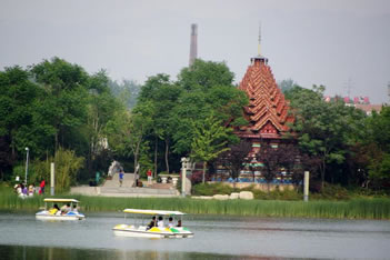 蘭州展園又名百合園,意喻“事事和好”,體現(xiàn)了“和諧”的理念。蘭州展園設計采用自然式布局,通過用代表黃河文化的水車的展示,反映蘭州市黃河風情線和南北兩山生態(tài)環(huán)境建設和林業(yè)科技發(fā)展,展示甘肅黃河文化,人民生活蒸蒸日上的人與自然和諧的景觀園區(qū)。