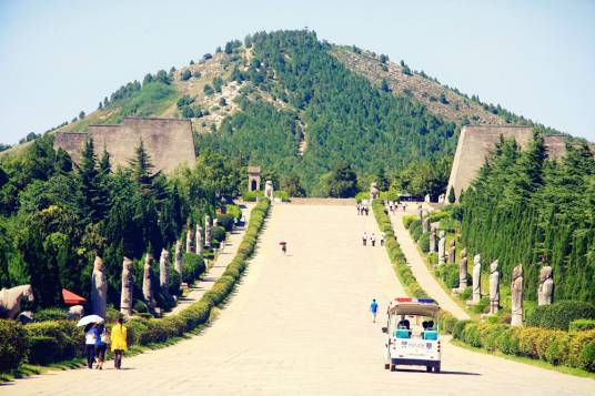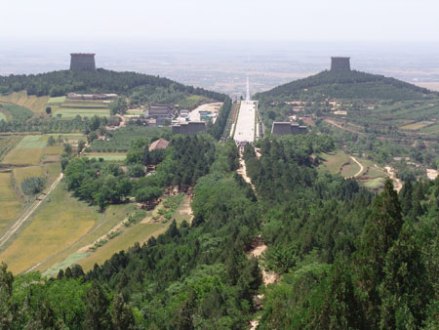 乾陵是第一批全國重點(diǎn)文物保護(hù)單位,也是盛唐文化的代表性旅游區(qū),位于乾縣城北6千米的梁山上,是中國唐王朝第三代皇帝高宗李治和中國歷史上唯一的女皇帝武則天的合葬陵,仿唐長安城格局構(gòu)筑,分為宮城、皇城和外城三個(gè)部分。內(nèi)城面積約為230萬平方米,有南朱雀、北玄武、東青龍、西白虎四門,外城周長40千米,F(xiàn)存有華表、翼馬、無字碑、六十一蕃臣石像等精美絕倫的大型石刻100多件。陵園的東南隅分布有17座陪葬墓,出土以唐三彩為代表的珍貴文物4000余件,壁畫1200多平方米,石雕線刻畫150平方米,其中永泰公主墓、章懷太子墓和懿德太子墓地宮已對中外游客開放,為國家4A級旅游景區(qū)。
