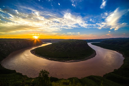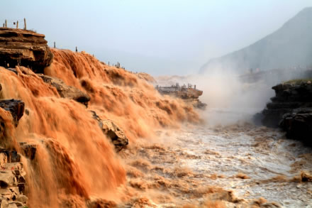 黃河在延安市延川縣眼岔寺鄉(xiāng)馬家騫村入?yún)^(qū)境,自北而南沿東界流經(jīng)延長(zhǎng)縣安河、羅子山、南河溝,在宜川縣猴兒川口出境,長(zhǎng)183千米。在宜川縣城東48千米處,黃河由200—300米寬收縮到50米,突然跌入34米深的壺形峽谷,形似巨壺沸騰,十分壯觀,稱(chēng)之為宜川壺口瀑布。