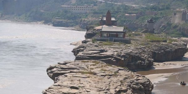 Ⅱ、孟門山景點:距壺口瀑布下游五公里處,“十里龍槽”下方,在黃河谷底的河床中,有兩塊梭形的巨石,巍然屹立在巨流中,形成兩個河心島,這就是古代被稱為“九河之蹬 ”的孟門山。相傳這兩個小島原為一山,阻塞河道,引起洪水四溢,大禹治水時,把此山一劈為二,導水暢流。此二島,遠眺如舟,近觀似山,俯視若門。又傳說古時,孟家兄弟的后代被河水沖走,曾在這里獲救,故將此二 島稱為孟門山。