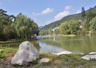 玉華宮東宮也叫郭玉溝,樹木郁蔥,清泉細(xì)流,天然巖窟鬼斧神工,人文景觀與自然景色渾然一體,若仙境一般。初春,山花爛漫,到玉華宮賞花,沉醉于山花爛漫之中,流連忘返;盛夏,溪回松風(fēng),曠然神怡,到玉華宮避暑,置身天然氧吧,感受郭玉溝的清爽和寧?kù)o;金秋,秋菊盛開,色彩斑斕,到玉華宮游園,體驗(yàn)陶淵明“采菊東籬下,悠然見南山”的閑情;隆冬,銀裝素裹,冰雕燈展 喜迎四方游客。