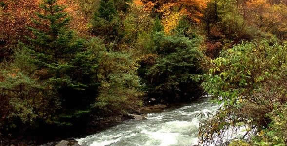 奶子溝:在藏語中是美麗富饒、幸福安寧之意。奶子溝八十里彩林風(fēng)情谷因身處深谷獨享清幽雅靜的奶子溝而得名,又以美甲天下的彩林世界而聞名。這里植被豐茂,陽光燦爛,氧氣充足,是個天然的大“氧吧”。奶子溝彩林洋洋灑灑長達(dá)八十里,蔚為壯觀。樹種主要由樺樹、松樹、柏樹、楓樹和各種喬木組成,還有不同色彩的針葉林、闊葉林、次生林、灌木叢點綴其間,密密麻麻地覆蓋了一坡又一坡。在純凈的藍(lán)天底下,紫紅、粉紅、橘紅、金紅、深黃、草綠、黃綠、棕紅、褐色的樹木形成了“萬類霜天競自由”之勢。進(jìn)入彩林世界你會感覺進(jìn)了油彩的世界,任你語言學(xué)家、色彩學(xué)家在它面前都會感到詞匯的匱乏,色彩的蒼白。