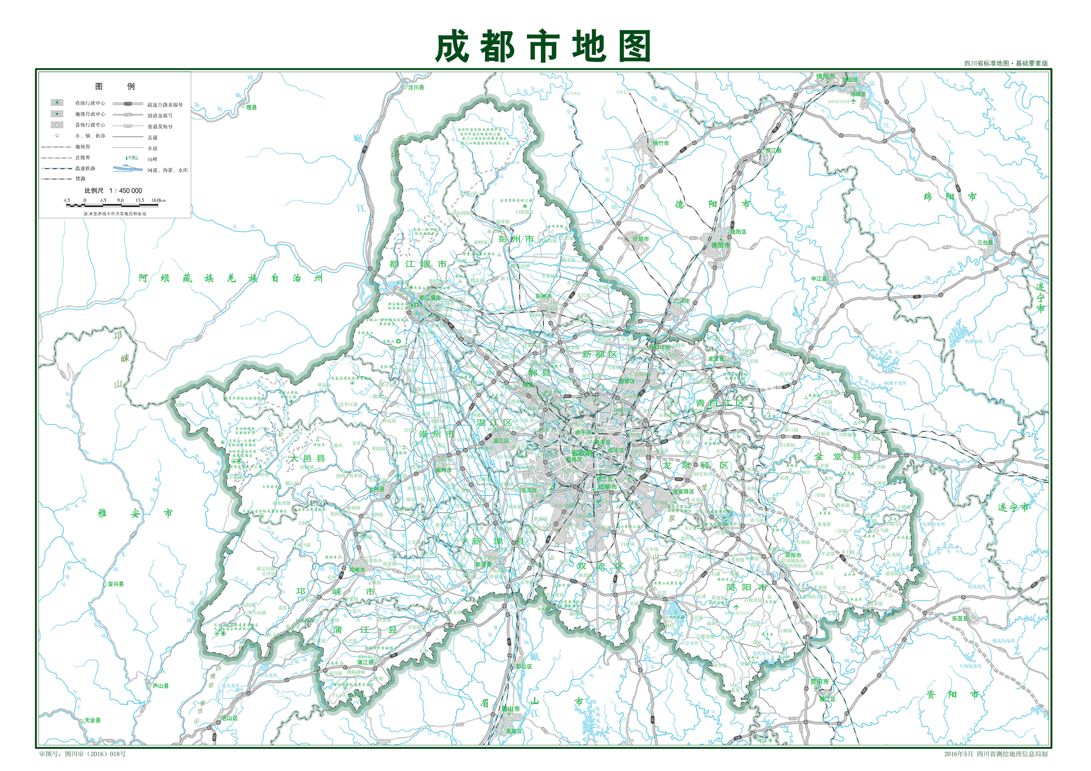 成都市有岷江、沱江等12條干流及幾十條支流,河流縱橫,溝渠交錯(cuò),河網(wǎng)密度高達(dá)1.22千米/平方千米;加上馳名中外的都江堰水利工程,庫、塘、堰、渠星羅棋布。
