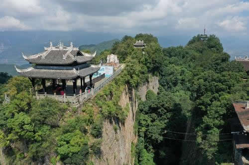二絕鐵索飛渡:連接主峰的鐵索懸橋初建于唐代,先后換修6次。山上還有身懷絕技的飛人,在鐵鏈上表演,行走如風,被譽為“華夏一絕”。