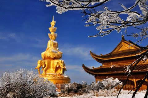 金頂是峨眉山的象征,金佛是峨眉山的標(biāo)志。金頂是峨眉山景點和寺廟的匯集,48米高的四面十方普賢金像矗立在金頂。
