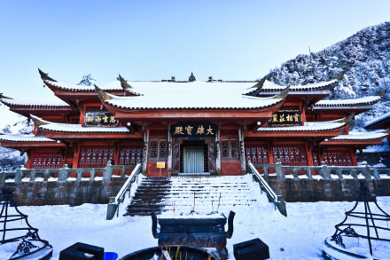 報國寺,是峨眉山的入山第一座寺廟,始建于明萬歷年間(1573—1619),原名會宗堂,清初遷建于此,順治九年重建;康熙四十二年(1703),康熙皇帝取佛經(jīng)“四恩四報”中“報國主恩”之意,御題“報國寺”匾額,王藩手書;報國寺歷史上經(jīng)過數(shù)次修葺,寺院得以完整保存。