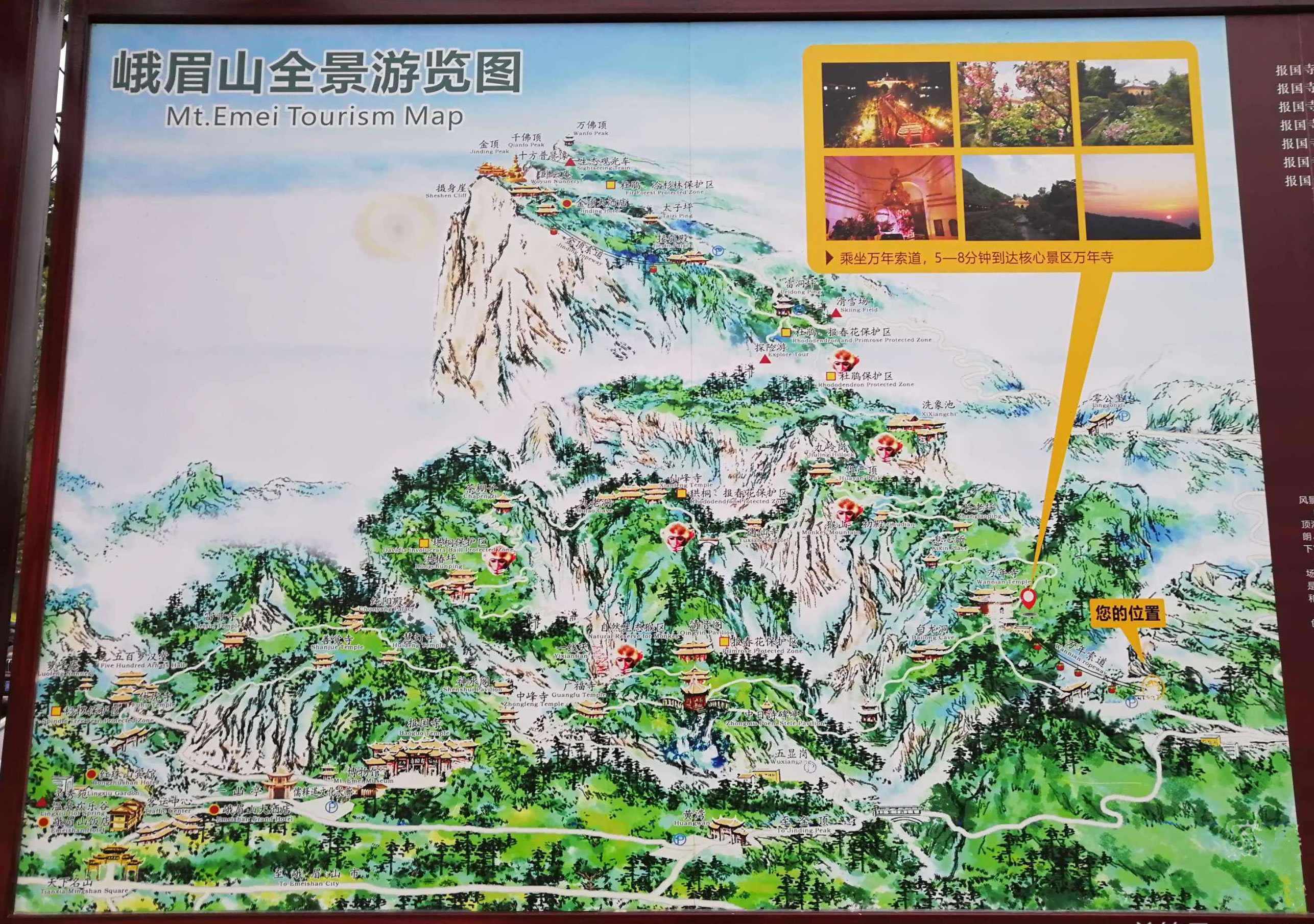峨眉山原有大小寺院百余處,幾經(jīng)興廢,現(xiàn)存主要寺院有萬年寺、報國寺、伏虎寺、善覺寺、光相寺。