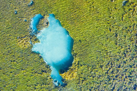 嫩芽悄然出現(xiàn),一抹抹新綠因重獲生機(jī)而生長(zhǎng)得日益茂盛,春風(fēng)吹醒了封凍的海子,吹皺了一汪碧水,水色是幽靜的藍(lán)、清新的綠、淺淺的黃。無(wú)風(fēng)的晴日,山林樹色盡數(shù)倒映其中,呈現(xiàn)出對(duì)稱之美。