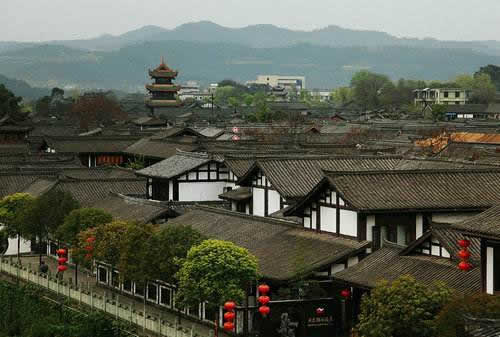 閬中古城的建筑風格體現(xiàn)了中國古代的居住風水觀,棋盤式的古城格局,融南北風格于一體的建筑群,形成“半珠式”、“品”字型、“多”字型等風格迥異的建筑群體,是中國古代建城選址“天人合一”完備的典型范例。