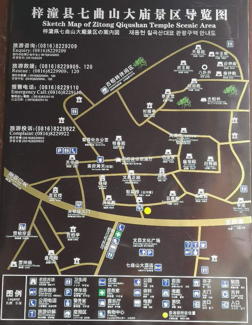 七曲山風景區(qū)位于四川省綿陽市梓潼縣城北約9公里處,地處劍門蜀道風景名勝旅游區(qū)之南端,金牛古蜀道(今108國道)縱貫南北,整個旅游區(qū)沿山脊成帶狀分布,占地面積29.3平方公里。七曲山風景區(qū)以文昌文化發(fā)祥地和全國最大的純古柏林享譽海內外,有以古蜀道、古皇柏、古建筑、古文化為主體的人文景觀50多處,文化底蘊極為深厚。