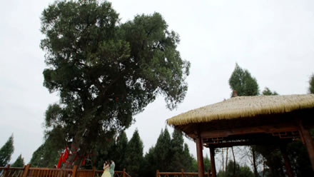 民間關(guān)于神仙樹的美麗傳說很多,相傳某年的八月八日,不知何方的一高一矮,一胖一瘦,一位仙風(fēng)道骨,一位邋遢放浪的老者,飄然來到尖包嶺,點(diǎn)石為枰,碎石為棋,以石為凳,手談對(duì)弈。棋勢(shì)變幻之間,四周時(shí)而雷霆激蕩,時(shí)而風(fēng)和日麗,時(shí)而萬物沉寂。這樣,不知過了多少時(shí)候,兩位老者抹掉棋枰,拂去棋子,背北面南,嘴里念念有詞,手里比比劃劃,頃刻間,尖包嶺大雨傾盆,繼而和風(fēng)細(xì)雨,云蒸霞蔚,兩位老者飄然而去,所坐之地變成了五花石,形如花瓣的五花石中間長(zhǎng)出兩棵高低錯(cuò)落、枝繁葉茂的翠柏。從此,人們就把翠柏叫作“神仙樹”,把 “尖包嶺”叫作“神仙梁”。又有民間記載:仙海湖所在沉香鋪(現(xiàn)名沉抗鎮(zhèn))是民間傳說《寶蓮燈》中三圣母之子沉香生長(zhǎng)和得道升仙的地方。據(jù)《廣異記》載:沉香大孝,其母被二郎神楊戩壓于華山之下,沉香以神、斧打敗二郎神,劈山救母,而神仙樹就是沉香仙子母子二人化身而來的兩株古樹,交織相連,撐天而起,屹立山巔,母子倆以深情目光,凝視著天下樹,庇護(hù)這天下蒼生。