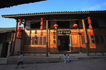 大鴻米店是堯壩古鎮(zhèn)在歷史上作為川黔糧食貿(mào)易重要集散地的遺存古建筑,是研究川黔經(jīng)濟(jì)史、交通史和建筑風(fēng)格的重要實(shí)物資料。著名導(dǎo)演黃健中曾以此背景拍攝電影《大鴻米店》而使該店名聞遐邇。大鴻米店內(nèi)設(shè)有在堯壩古鎮(zhèn)拍攝的所有影視道具展廳和明、清時(shí)期家具展廳。