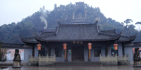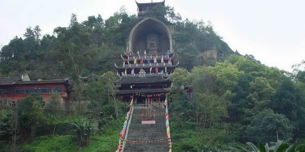 榮縣大佛:榮縣城東0.5公里有全國第二大佛——榮縣大佛,大佛寺內(nèi)半山之上,有一尊巍峨的石刻如來坐佛佛像,世稱榮縣大佛。大佛依山崖鑿成,通高36.67米,頭長8.76米,肩寬12.67米,膝高12米,腳寬3.5米,其頭部長8.76米,肩寬12.67米,腳寬3.5米。是一尊如來佛像,僅次于樂山彌勒大佛,為中國第二石刻大佛!s縣大佛開鑿于北宋元豐八年(公元1085年),完工于公元1092年,歷時八年始完工。大佛的頭頂上方有一道石條卷拱護(hù)罩,上刻“大開覺路”四字;崖頂上還有磚閣一座,遠(yuǎn)看像在戴在大佛頭頂上的寶冠!〈蠓痂徔掏旯ず,即修有殿宇保護(hù),根據(jù)《古今圖書集成》記載,時有“架殿十層,高四十七丈,闊十五丈”、“舊時寺門、抵今溪岸”?梢姰(dāng)時的恢宏氣勢,其后幾毀幾修,現(xiàn)存的殿宇為清代嘉慶、道光年間所建。1988年重建的大佛護(hù)身樓,是仿木仿古重檐歇山式建筑,既保護(hù)了大佛,又具游覽價值,逐層登樓近瞻佛容慈顏,從上到下盡觀大佛偉岸雄姿,鳥瞰榮城風(fēng)貌,眺望遠(yuǎn)山近巒。