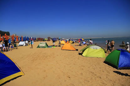 東疆港人工沙灘(東疆灣金沙灘)—天津?yàn)I海新區(qū)首個(gè)人工海灘已經(jīng)建成,藍(lán)色的海水,金色的沙灘,或坐在松軟沙灘上吹海風(fēng),或光著腳丫在鵝卵石帶上散步,撿貝殼、吃燒烤、玩沙灘排球……您用不著走出天津,就能享受“碧海金沙”帶來的樂趣。東疆港人工沙灘所處的位置是天津海岸線最靠近外海,也是水質(zhì)最好的地方。東疆港人工沙灘的“金沙”平均厚度達(dá)1.2米,從岸邊呈緩坡狀一直延伸至海邊。人工沙灘所用的“金沙”全部從福建運(yùn)來,用量近20萬(wàn)噸。沙灘的緩坡設(shè)計(jì)充分考慮到潮水漲落時(shí)的水流情況,可防止海水退潮時(shí)將“金沙”帶走。為保證游人安全,在公共游樂區(qū)沙灘的近海端鋪設(shè)了一條寬約58米的鵝卵石帶,所用鵝卵石將從秦皇島運(yùn)來。此外,天津港還在附近海域修建防波堤,以保持海灘的潔凈,防止海上漂浮物進(jìn)入人工海灘。