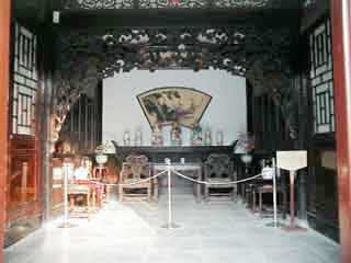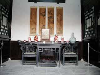在甬道西側(cè),現(xiàn)辟為"石府復(fù)原陳列"區(qū)。這是當(dāng)年石家會晤賓客、娛樂消閑、誦經(jīng)禮佛的場所。裝飾陳設(shè)豪華。有四扇木雕花屏,被稱為國寶,當(dāng)時工價1200兩白銀,一朵花、一片葉就合6兩白銀。室內(nèi)設(shè)備講究。有一間客廳地下有暖風(fēng)通道,冬天在墻外地爐里每天燒木炭200斤,向室內(nèi)地下供熱。