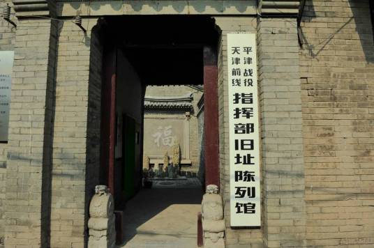 平津戰(zhàn)役天津前線指揮部舊址陳列館位于西青區(qū)楊柳青鎮(zhèn)藥王廟東大街4號(hào),原為一所四合院式民宅,總面積為280平方米。1948年12月至1949年1月解放天津戰(zhàn)役時(shí),中國(guó)人民解放軍平津戰(zhàn)役天津前線指揮部曾設(shè)在這里。1949年1月14日上午10時(shí),劉亞樓司令員就是在這里發(fā)布了總攻命令,經(jīng)過29個(gè)小時(shí)的激戰(zhàn),全殲守?cái)?3萬(wàn)余人。1月15日,天津獲得解放。1962年,河北省將該處定為省級(jí)文物保護(hù)單位;1982年,天津市政府重新公布為市級(jí)文物保護(hù)單位,并于1983年建立平津戰(zhàn)役天津前線指揮部舊址陳列館,當(dāng)年12月對(duì)外開放。