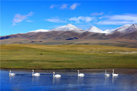天鵝湖坐落在草原上,在新疆和靜縣巴音布魯克區(qū)政府約60千米的巴音鄉(xiāng)西南部。天鵝湖實(shí)際上是由眾多相互串聯(lián)的小湖組成的大面積沼澤地,這是中國(guó)第一個(gè)天鵝自然保護(hù)區(qū)。保護(hù)區(qū)水草豐茂,氣候濕爽。鳥(niǎo)類有128種,隸屬14目30科80余屬,其中雀形目53種,非雀形目75種;繁殖鳥(niǎo)95種,占74%,其中留鳥(niǎo)34種,棲息著中國(guó)最大的野生天鵝種群,是鳥(niǎo)類繁殖和渡夏的棲息地。獸類有20余種,其中,兩棲類2種,魚(yú)類5種。其中屬國(guó)家Ⅰ類保護(hù)的有8種,如雪豹、黑鸛、金雕、白肩雕等,Ⅱ級(jí)保護(hù)的有25種,如天鵝、盤羊、雪雞等。