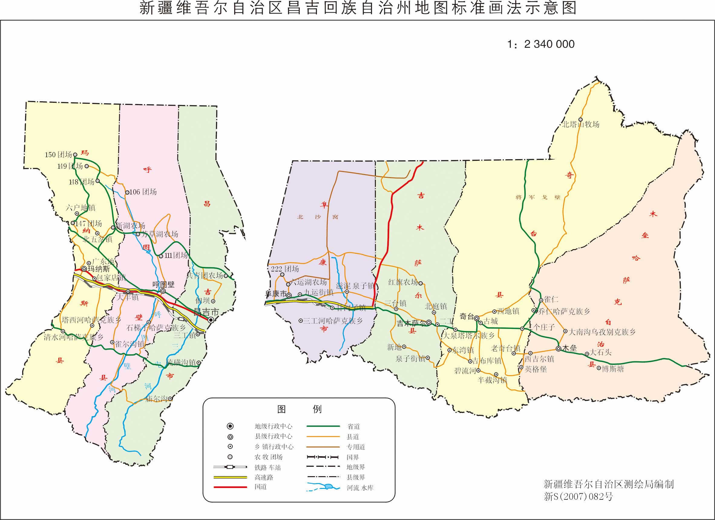 昌吉回族自治州轄2個(gè)縣級(jí)市、4個(gè)縣、1個(gè)自治縣: