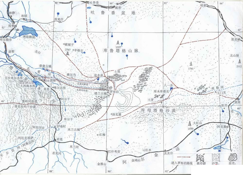 至清代末葉,羅布泊水漲時,僅有“東西長八九十里,南北寬二三里或一二里不等”,成了區(qū)區(qū)一小湖。