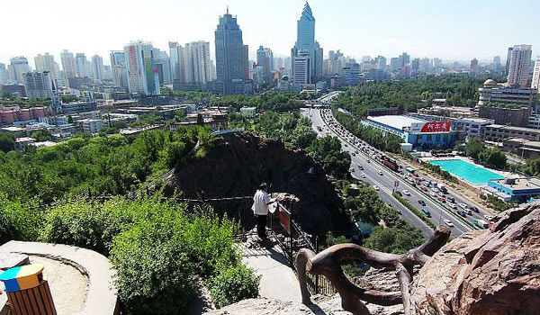 紅山位于烏魯木齊市中心,山巖突兀,每當(dāng)晨昏,巖壁映日,紅光熠熠,因而得名。山勢呈東西走向,主峰海拔1391公尺。因山頭狀如猛虎,峭巖色赤,故又稱“虎頭山”、“紅山嘴”。紅山與對面不足千米遠(yuǎn)的雅馬里克山相對峙。山下,烏魯木齊河縱貫?zāi)媳薄<t山已成為烏魯木齊市的象征之一。