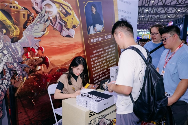 作為國(guó)創(chuàng)變形機(jī)甲代表性IP,猛獸匣(BEASTBOX)系列成為本次52TOYS展區(qū)的最大亮點(diǎn),產(chǎn)品和內(nèi)容成果頗豐。備受玩家期待的猛獸匣首部官方小說(shuō)《猛獸匣:金屬之歌》珍藏版在展會(huì)現(xiàn)場(chǎng)超前發(fā)售,小說(shuō)作者、曾榮獲中國(guó)科幻銀河獎(jiǎng)最佳新人獎(jiǎng)的科幻作家王諾諾親臨現(xiàn)場(chǎng)簽售。小說(shuō)以其精美的裝幀與引人入勝的設(shè)定,迅速成為資深玩家與科幻愛(ài)好者爭(zhēng)相收藏的對(duì)象,現(xiàn)場(chǎng)等候簽售及購(gòu)買的粉絲排起長(zhǎng)龍。