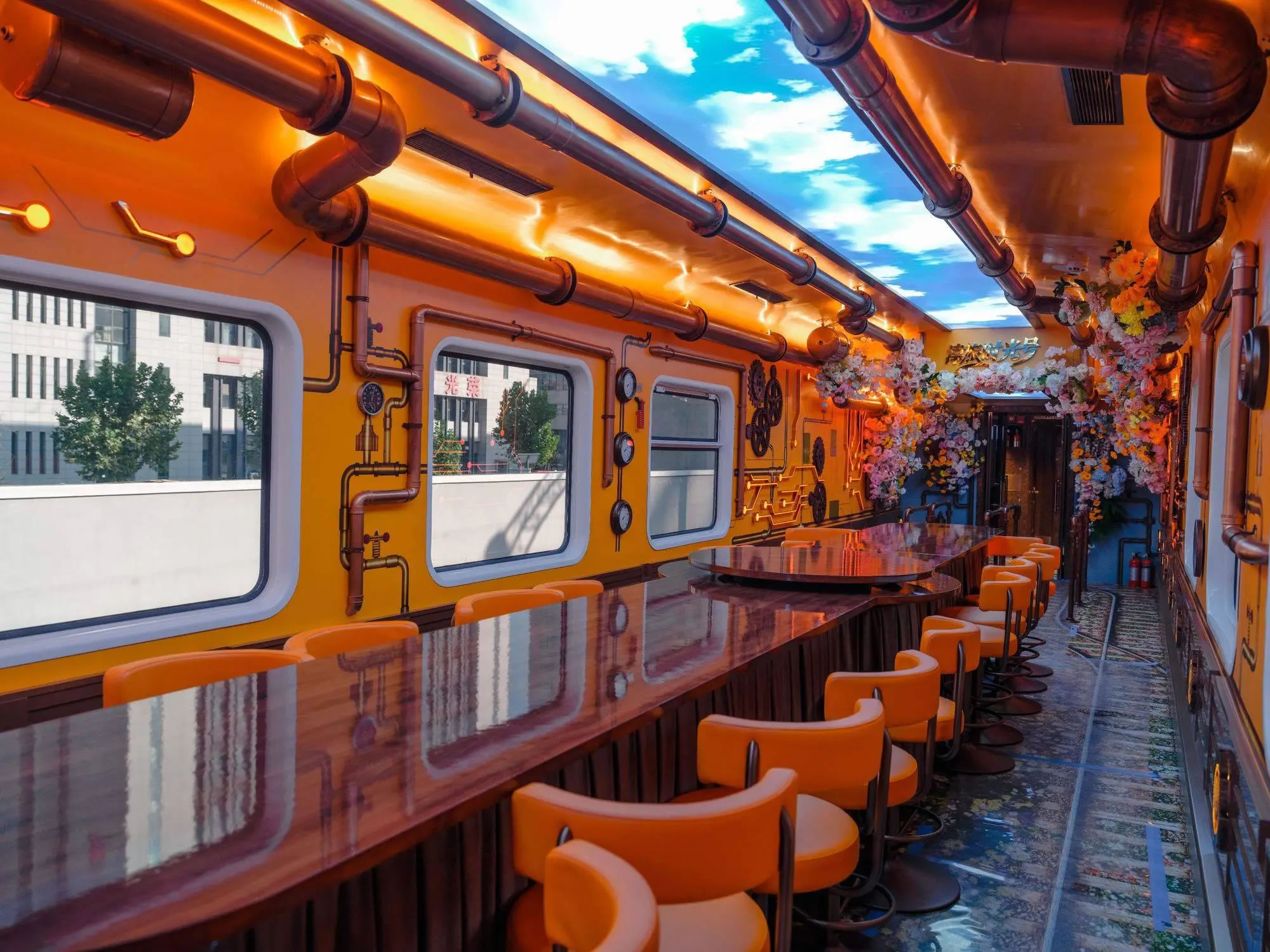 列車共設(shè)10節(jié)主題鮮明的特色車廂:分別為復(fù)古客座車廂、蒙太奇幻境互動演藝車廂、珍奇花園俱樂部車廂、沉浸式時空穿梭機(jī)車廂以及專屬VIP車廂,均以沉浸式戲劇化空間為理念,將座椅拆分重組,每節(jié)車廂形成互動或演藝區(qū),配備移動舞臺、隱藏?zé)糗壓铜h(huán)繞音響。座椅、地面及軟裝材料兼顧安全與舒適,同時配備冷暖氣系統(tǒng)、移動吧臺和多功能儲物柜,提供全方位的互動體驗。