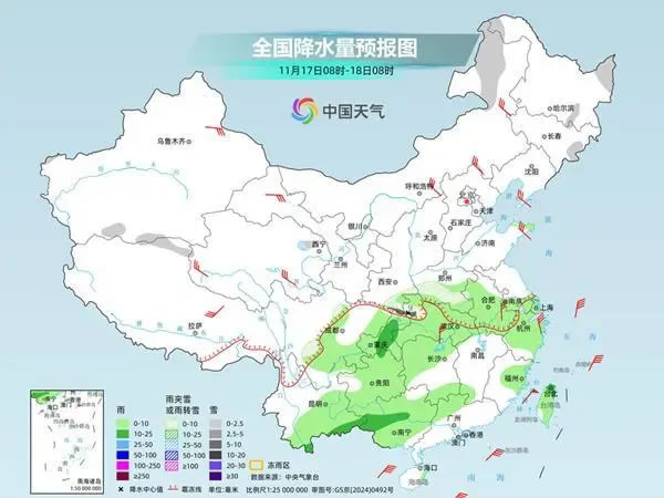 今天,東北地區(qū)雨雪基本結(jié)束,秦嶺一帶雨雪也將減弱,南方陰雨天氣有所增多。明天,隨著寒潮繼續(xù)南下,全國(guó)大部將轉(zhuǎn)為晴朗干燥的天氣格局。