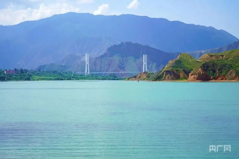 黃河流經(jīng)青海境內(nèi),河面如鏡,碧波蕩漾(央廣網(wǎng)記者 汪曉青 攝)