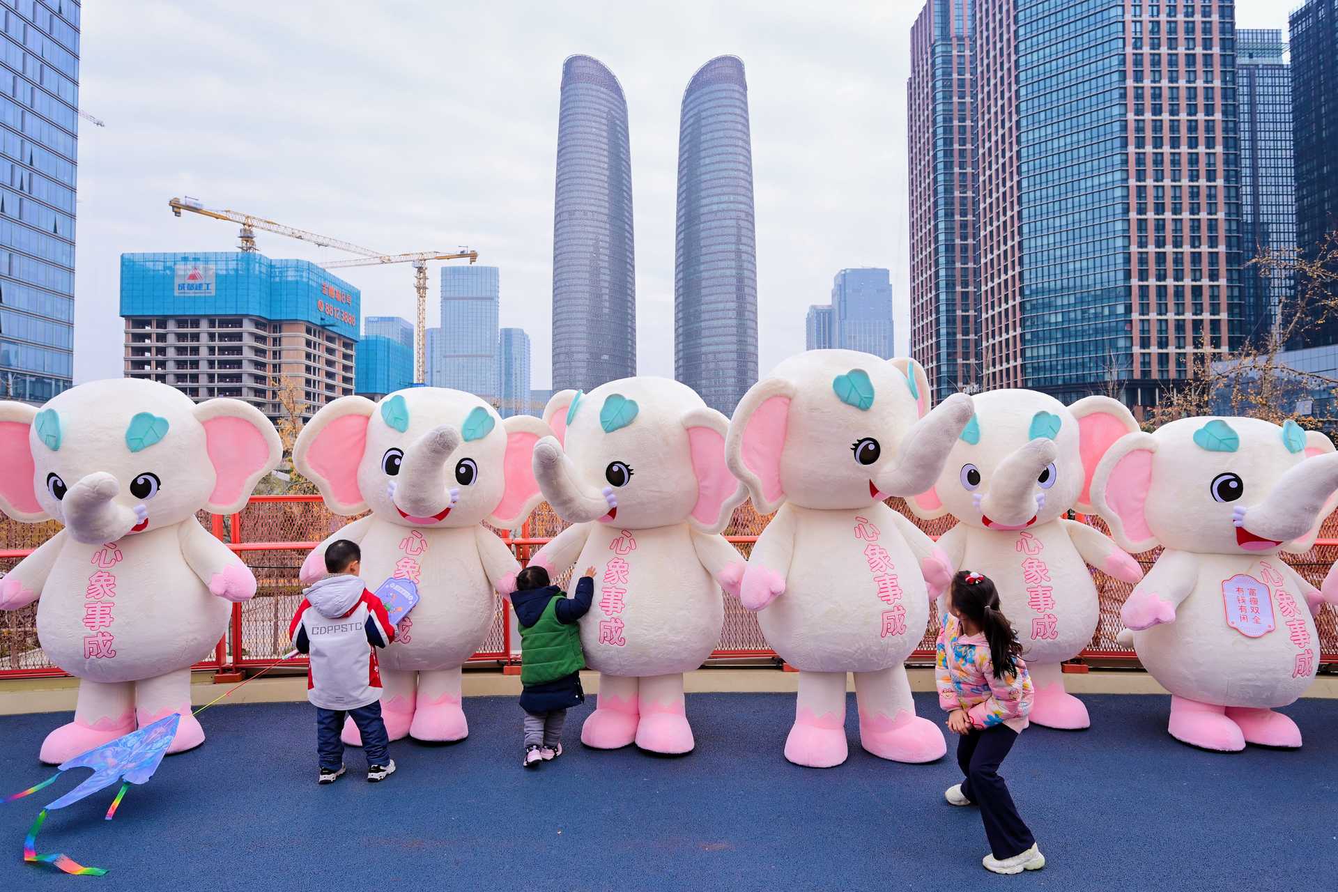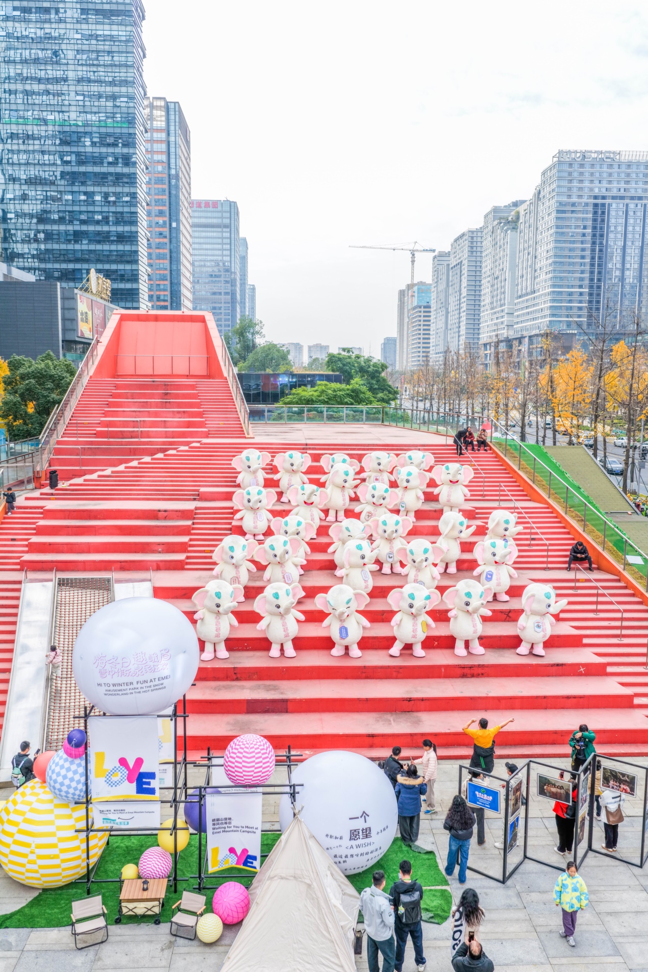 此次登陸成都的“福象巡游”,堪稱冬日文旅盛宴的點睛之筆,其文化內(nèi)核源自峨眉山極具代表性的祥瑞符號——六牙白象。圣潔白象煥新蛻變萌趣福象六六,依托“象”與“祥”的諧音之妙,圣潔莊重的六牙白象幻化身為萌態(tài)十足的小福象,既延續(xù)了白象承載的吉祥庇佑之意,更將“峨眉耍雪・心象事成”的內(nèi)涵詮釋得淋漓盡致,成為冬日里最治愈的祥瑞福氣天團。“耍雪”是峨眉山冬季獨有的極致浪漫,金頂皚皚白雪的圣潔壯闊、林間戲雪的肆意歡騰,是鐫刻在每個人心中的冬日終極向往;“心象事成”則暗藏滿滿期許,飽含人們對冬日美好景致的熱切期盼,以祥瑞之氣傳遞祝福,寓意奔赴峨眉耍雪尋福之人,皆能心愿順?biāo)、萬事勝意。27只小福象精準(zhǔn)復(fù)刻六牙白象的靈動神韻,從仙氣繚繞的峨眉仙山走進煙火繁盛的都市街巷,讓仙山的靜謐禪意與都市的熱鬧活力完美交融。