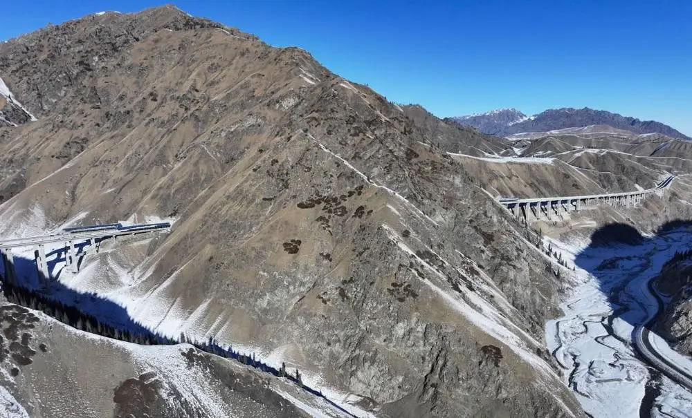 12月下旬,記者驅(qū)車從烏魯木齊前往烏尉高速采訪。寒風(fēng)掠過天山山脊,皚皚白雪覆蓋著險(xiǎn)峻山群,層巒疊嶂之中,一條大道向前鋪展,于天山內(nèi)部打通條條隧道,在崇山峻嶺間架設(shè)橋梁。