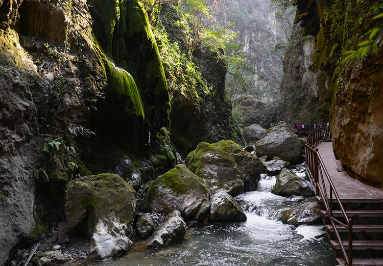 大地縫旅游景區(qū)位于縣城東南60千米的雨碌鄉(xiāng)。入口處稱“生命之門(mén)”。洞內(nèi)頂部呈弧形,有上億年巖漿形成的道道褶皺,當(dāng)?shù)厝朔Q“天花板”,長(zhǎng)約20余米。過(guò)了天花板,但見(jiàn)青天一線,在綿延曲折的10余千米地縫中,兩山最窄處僅1.6米,最寬處不過(guò)20余米。