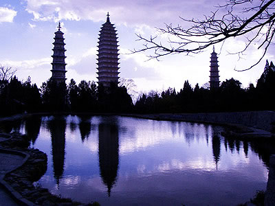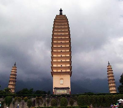 大理崇圣寺三塔,距離下關(guān)14公里,位于大理以北1.5公里蒼山應樂峰下,背靠蒼山,面臨洱海,三塔由一大二小三座佛塔組成,呈鼎立之態(tài),遠遠望去,雄渾壯麗,是蒼洱勝景之一。