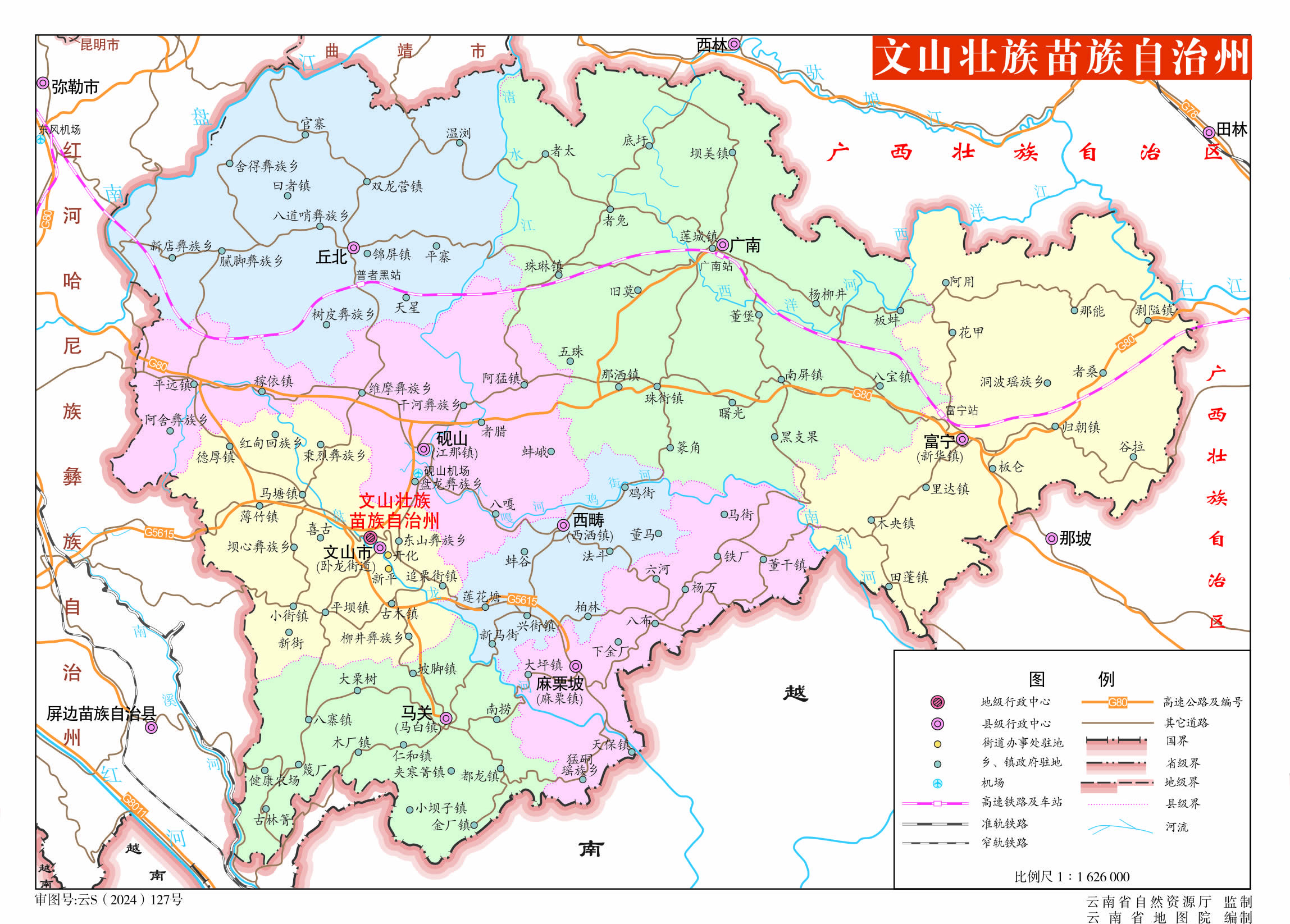 文山壯族苗族自治州轄1個(gè)縣級(jí)市、7個(gè)縣: