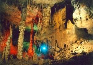 天臺(tái)山溶洞離縣城32公里,位于麟風(fēng)鄉(xiāng)畢壩公路邊的老鷹巖上,具有宏、美、寬、多的特點(diǎn)。洞有四層,每層之間高差20~50米,互相貫通,各有廳堂,其中可開發(fā)利用3層。已探測(cè)的第二層洞面積64095平方米,長(zhǎng)2138.2米。洞終標(biāo)高1188.94米,其中:主洞長(zhǎng)1264米,寬35米,高約25米;支洞深874.1米,寬25米,高18~25米。有10余個(gè)大廳,大者寬約100米,小者寬20~30米。洞內(nèi)次生碳酸鈣沉積物類型繁多,色彩絢麗,形成各異。單體、復(fù)合體共生,黃色、淡紅色、白色或無色透明石乳、石筍、石柱比比皆是,多以站立式、側(cè)掛式、懸垂分布式。