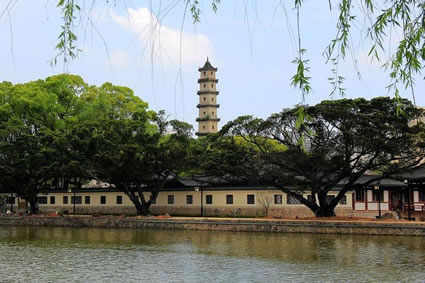 立于江心寺大殿前,南望鹿城,煙雨如絲,正合“春風(fēng)又綠江南岸”的詩(shī)意。前人題詩(shī)云:“是煙復(fù)是雨,東風(fēng)不開束。一夜霏空瀠,染得城頭綠!
