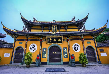 現(xiàn)存之江心寺為清乾隆五十四年(1789)重建,面積約2870平方米,分前、中、后三殿。前殿為天王殿,東西有長(zhǎng)廊,兩端置鐘鼓樓。今宋代古鐘尚存。中殿為圓通殿,最為壯觀,供奉的是觀音菩薩,江心寺為全國(guó)32所觀音菩薩道場(chǎng)之一。殿內(nèi)檻聯(lián)匾額,琳瑯滿目。正柱聯(lián)為宋王安石撰并書。后殿三圣殿,殿額與對(duì)聯(lián)皆為弘一法師所書。寺院大門兩邊有題為宋王十朋撰書的疊字聯(lián):“云朝朝朝朝朝朝朝朝散,潮長(zhǎng)長(zhǎng)長(zhǎng)長(zhǎng)長(zhǎng)長(zhǎng)長(zhǎng)長(zhǎng)消”。由書法家方介堪正楷重寫。寺周古木參天,景色清幽。1983年列為全國(guó)對(duì)外開放142座重點(diǎn)寺院之一。