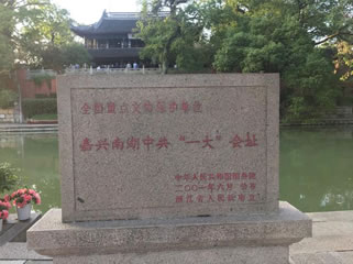 南湖不僅以秀麗的風(fēng)光享有盛譽(yù),而且還因中國(guó)共產(chǎn)黨第一次全國(guó)代表大會(huì)在這里勝利閉幕而備受世人矚目,成為我國(guó)近代史上重要的革命紀(jì)念地。1921年7月23日,中國(guó)共產(chǎn)黨第一次全國(guó)代表大會(huì)在上海秘密召開。會(huì)議臨近結(jié)束時(shí),遭法租界巡捕的襲擾而被迫停會(huì)。根據(jù)上海代表李達(dá)的夫人王會(huì)悟的建議,8月1日會(huì)議轉(zhuǎn)移到嘉興南湖的一條游船上繼續(xù)舉行。在這條紅船上,會(huì)議通過了中國(guó)共產(chǎn)黨的第一個(gè)《綱領(lǐng)》和第一個(gè)《決議》,并選舉了黨的中央局領(lǐng)導(dǎo)機(jī)構(gòu),宣告了中國(guó)共產(chǎn)黨的誕生,中國(guó)革命的航船從此揚(yáng)帆起航。