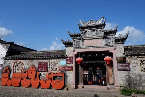 老街兩旁都是長板門面的店鋪。緊鄰老街是一幢幢至今保存完整的古建筑群,梁枋門窗上滿是雕飾,精巧的躍魚馬頭墻和脊塑墻花具有獨(dú)特的地方風(fēng)格。馬頭墻是古代江南富戶官宅威勢的象征,據(jù)說級數(shù)越多,職位越高。墻面嵌著雕花石窗,外墻上塑浮雕文字,墻尖塑著沖天而起的躍魚和飛龍,寓含“鯉魚跳龍門”之意。門柱上那兩只活動(dòng)的倒掛獅子,門墻上一對瓷盆中各飾有5只飛舞的蝙蝠,象征著五福臨門。大祠堂建于明洪武十八年。大廳有32根大圓柱,好比32顆象棋子,隱含全局一盤棋之意;每根柱子中間大,兩頭小,是典型的隋唐風(fēng)格明式建筑。