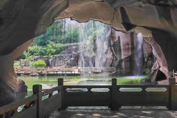 遍布島上的奇洞深穴,神秘詭異,令人驚嘆,石自天生,洞由人掘,天之工巧,人之靈性,成就了千洞之美:大洞小洞、橫洞豎洞、水洞旱洞、閉洞窄洞、彎洞直洞,洞中套洞,洞內有水,水中藏洞。洞為佛寺,佛寺即洞。真可謂洞洞為景,水水生色。洞內雨絕而清泉不絕,云絕而輕霧不絕。溽暑蒸蒸而清涼之氣不絕,寒冬凜凜而溫馨之息不絕。